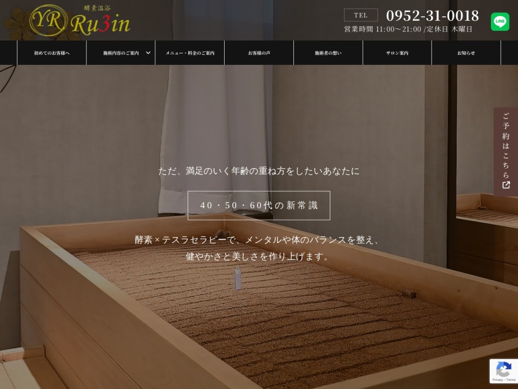 酵素温浴ru3in | 酵素温浴+整体マッサージ | 酵素の力で体を温めながら行う独自の施術法 |